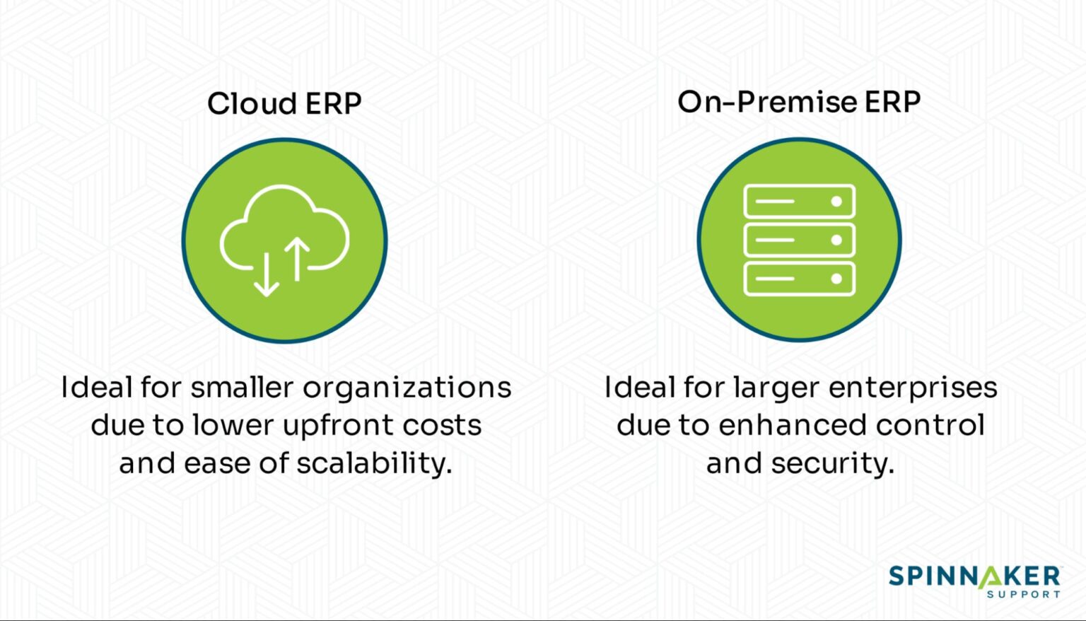When deciding between a cloud-based or on-premise ERP system, consider the following factors: